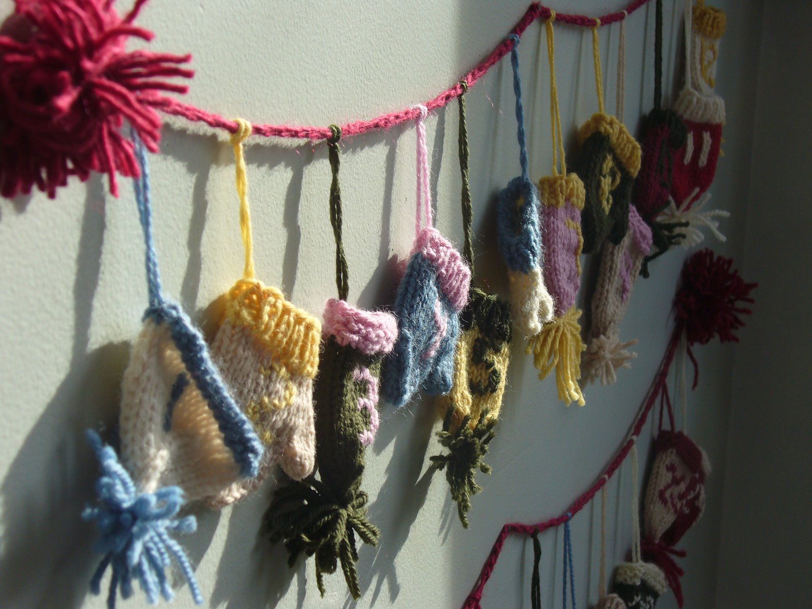 But this project was all about keeping things simple, or it would never get finished. Ever. I discarded nothing, as there was no time for ripping-and-redoing. The first hat I made (December 1st, left) was too small. Too round. I kept it. A red hat (December 11th, center) was rejected as too primary. Too Christmasy and obvious. Same with December 21st green mitten. I kept them, though, since this project was all about production.